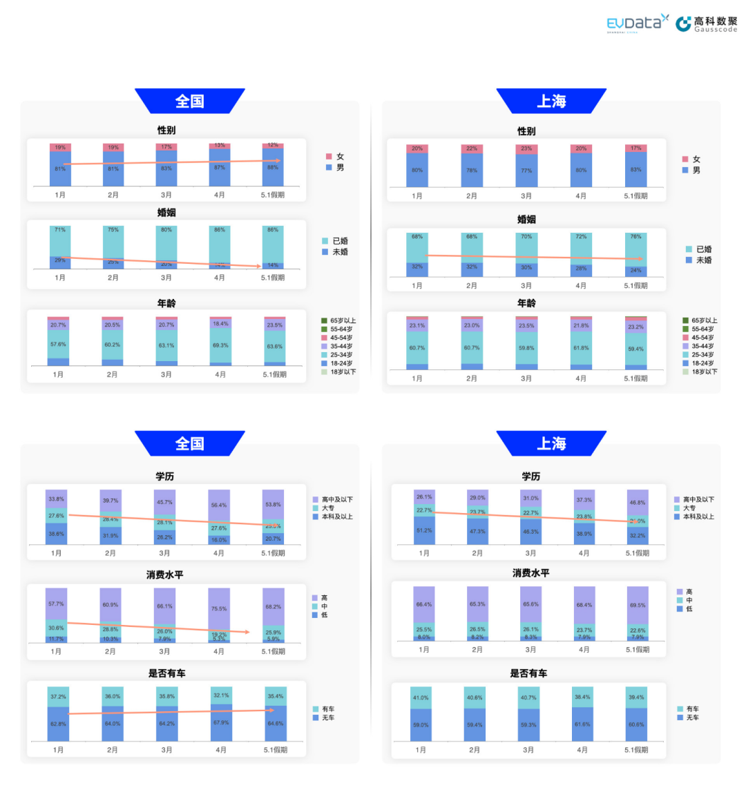 值得注意的是,新能源汽车市场竞争激烈,这也为本土车企带来了独特的竞争机遇。那么从大数据角度看,全国和上海新能源汽车关注人群有哪些变化趋势?上海新能源汽车出行特征如何?上海新能源汽车数据中心联合SG·亚洲胜游,一同透过数据带你看今年上海新能源汽车“五一”出行的新趋势。